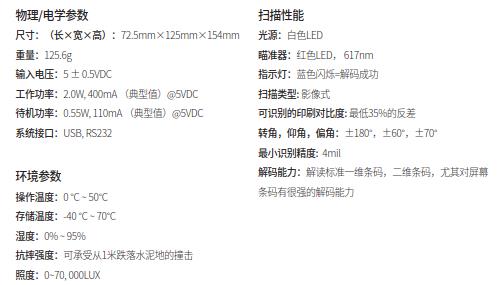 霍尼韋爾 HH480二維影像掃描槍詳細參數